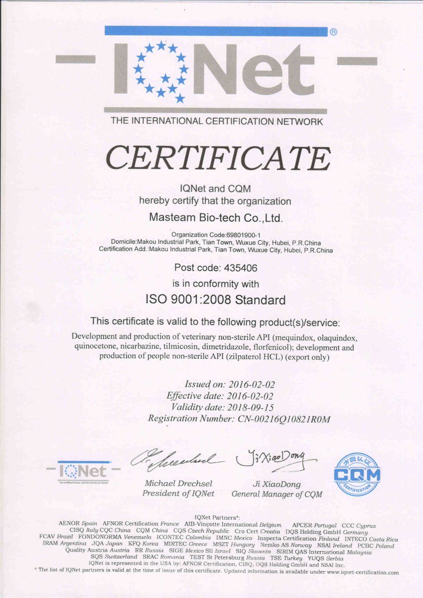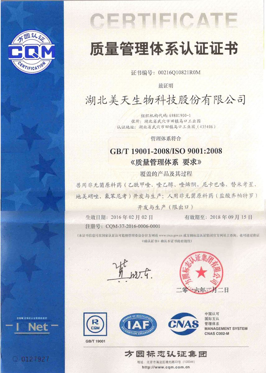 2016年2月2日,庄闲和官方网站 成功获得质量管理体系认证证书(GB/T 19001-2008/ISO 9001:2008)。