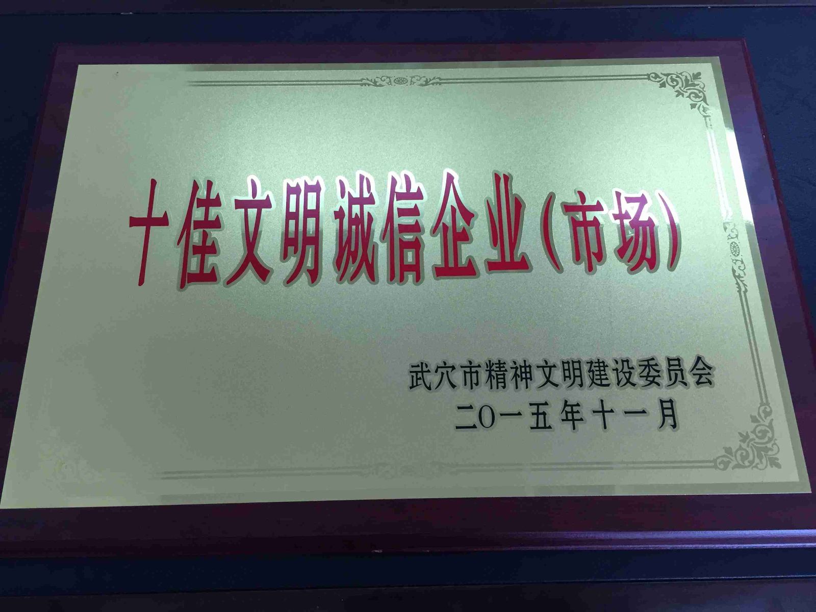据了解,此次评选活动是由武穴市工商局组织发起,经民主推荐,六家单位审核,层层把关,才脱颖而出。多年来,该公司始终坚做文明诚信企业,自觉遵守国家法律法规和方针政策,依法按时缴纳各种税、费,依法缴纳社会保险金和住房公积金,依法主动承担社会责任,努力构建和谐的劳动关系,员工收入逐年增长,企业实现了滚动发展,人和业兴的良好局面,同时积极参与社会公益事业,十二五期间该公司积极向社会公益事业捐款达到19.8万元,深受社会各界的广泛好评。