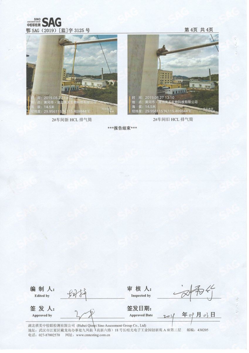 2019年第三季度,公司按照国家企业安全生产标准,对公司所排出的废气,委托第三方进行抽样检测,详细的检测报告如下