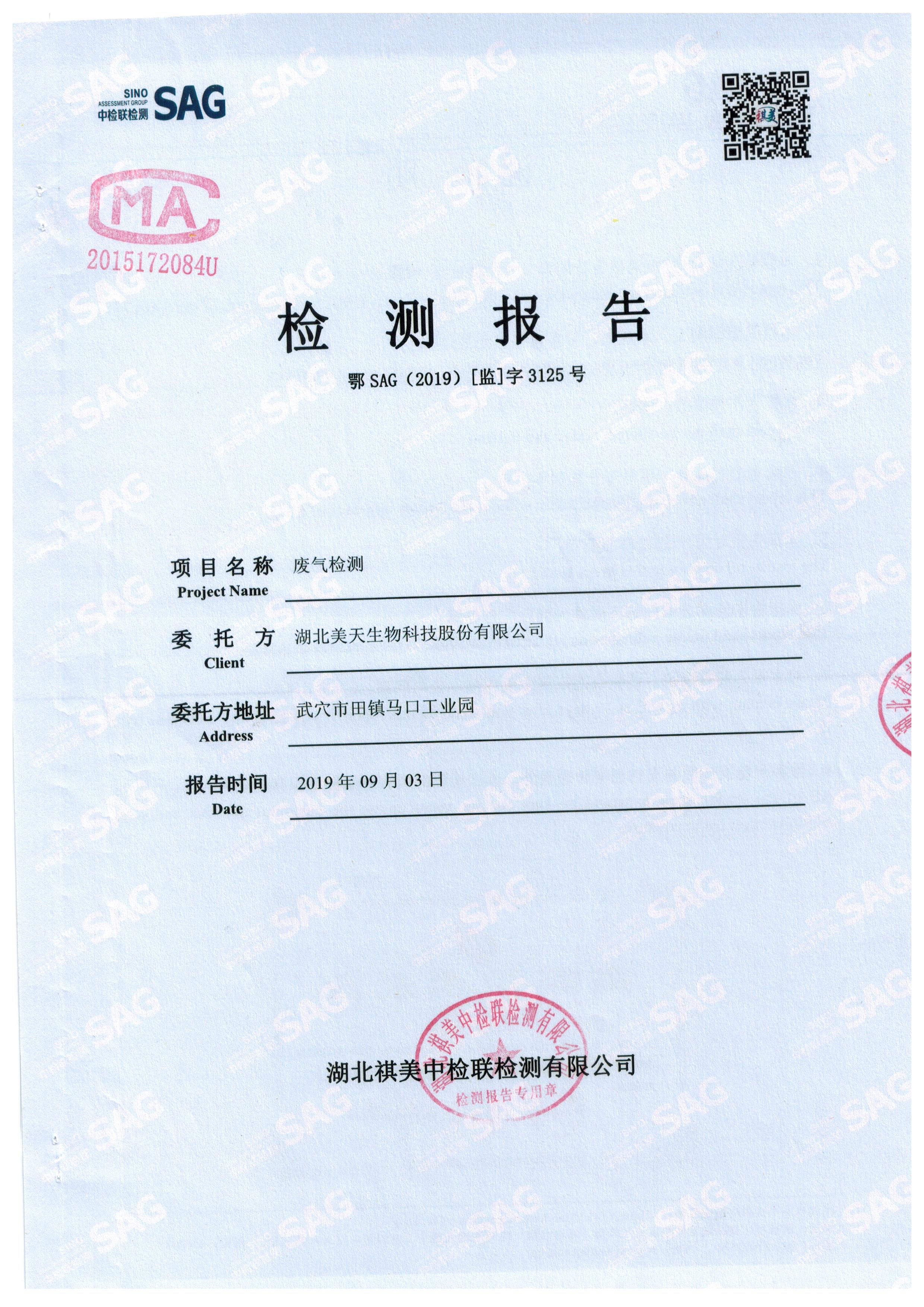 2019年第三季度,公司按照国家企业安全生产标准,对公司所排出的废气,委托第三方进行抽样检测,详细的检测报告如下